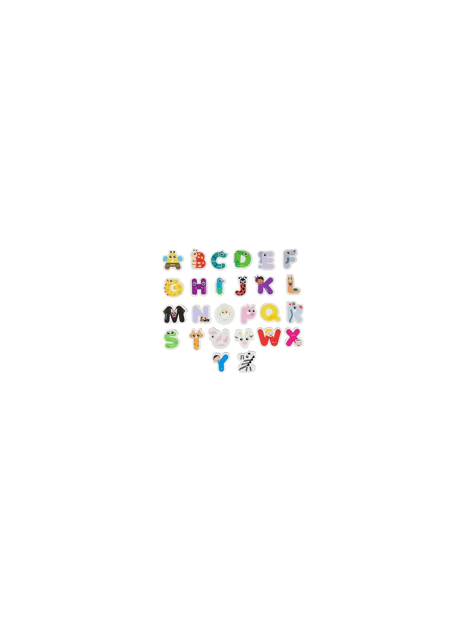 26 letras em Mdf ilustradas com o tema de animais, medindo 6cm cada.