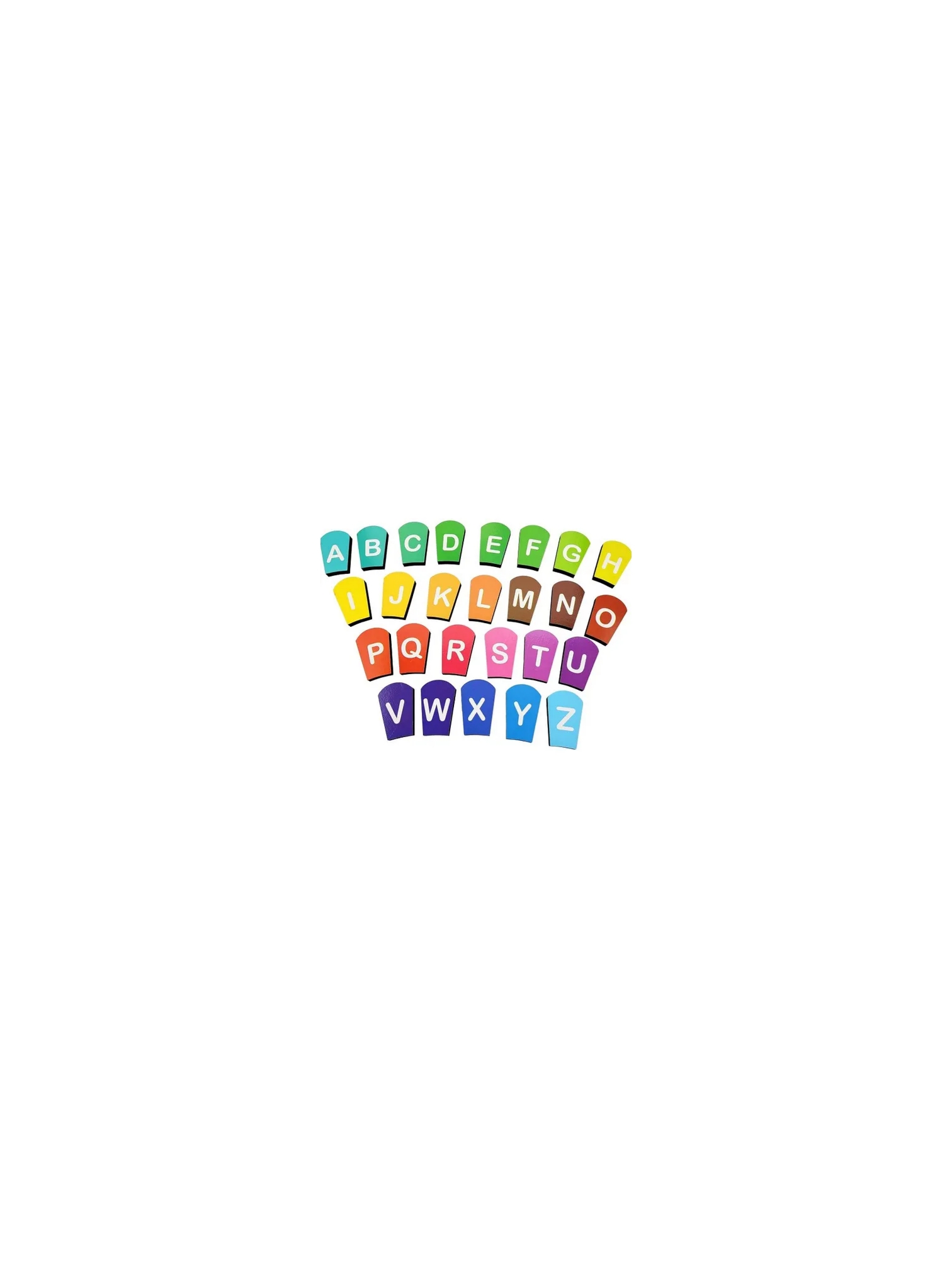 Contém uma base com letras minúsculas medindo 25x25 cm, 26 letras móveis maiúsculas e 7 peças diversas.