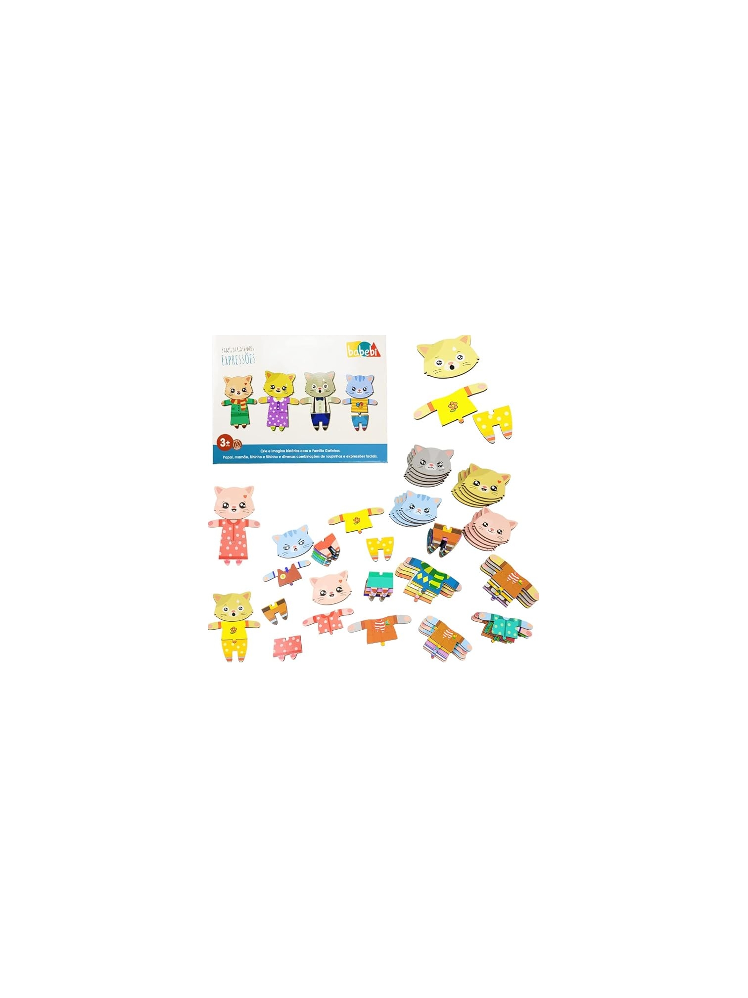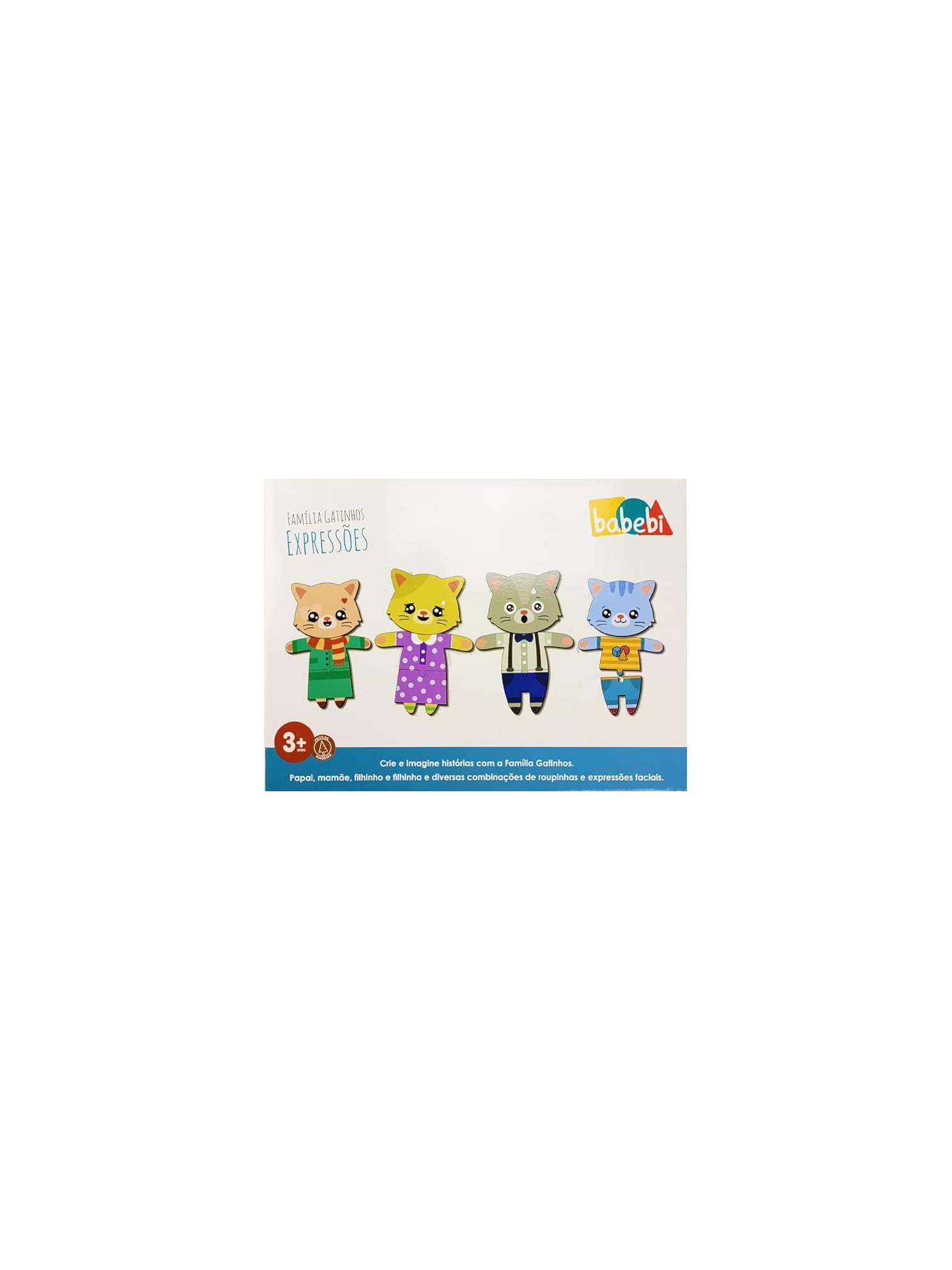 Família Gatinhos Expressões Brinquedo Educativo de Madeira
