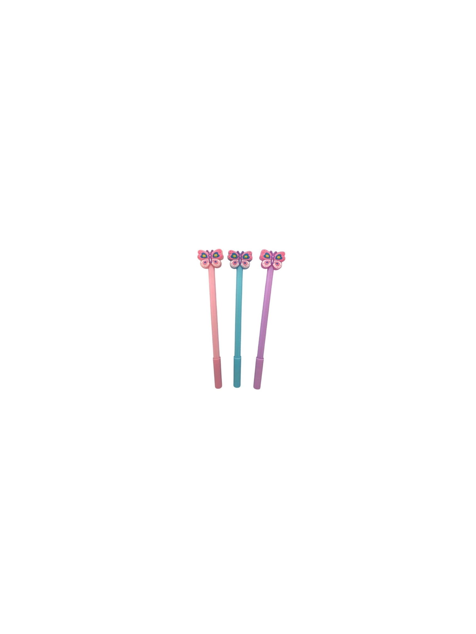 Caneta Fofa Borboleta em Gel - Arco Iris