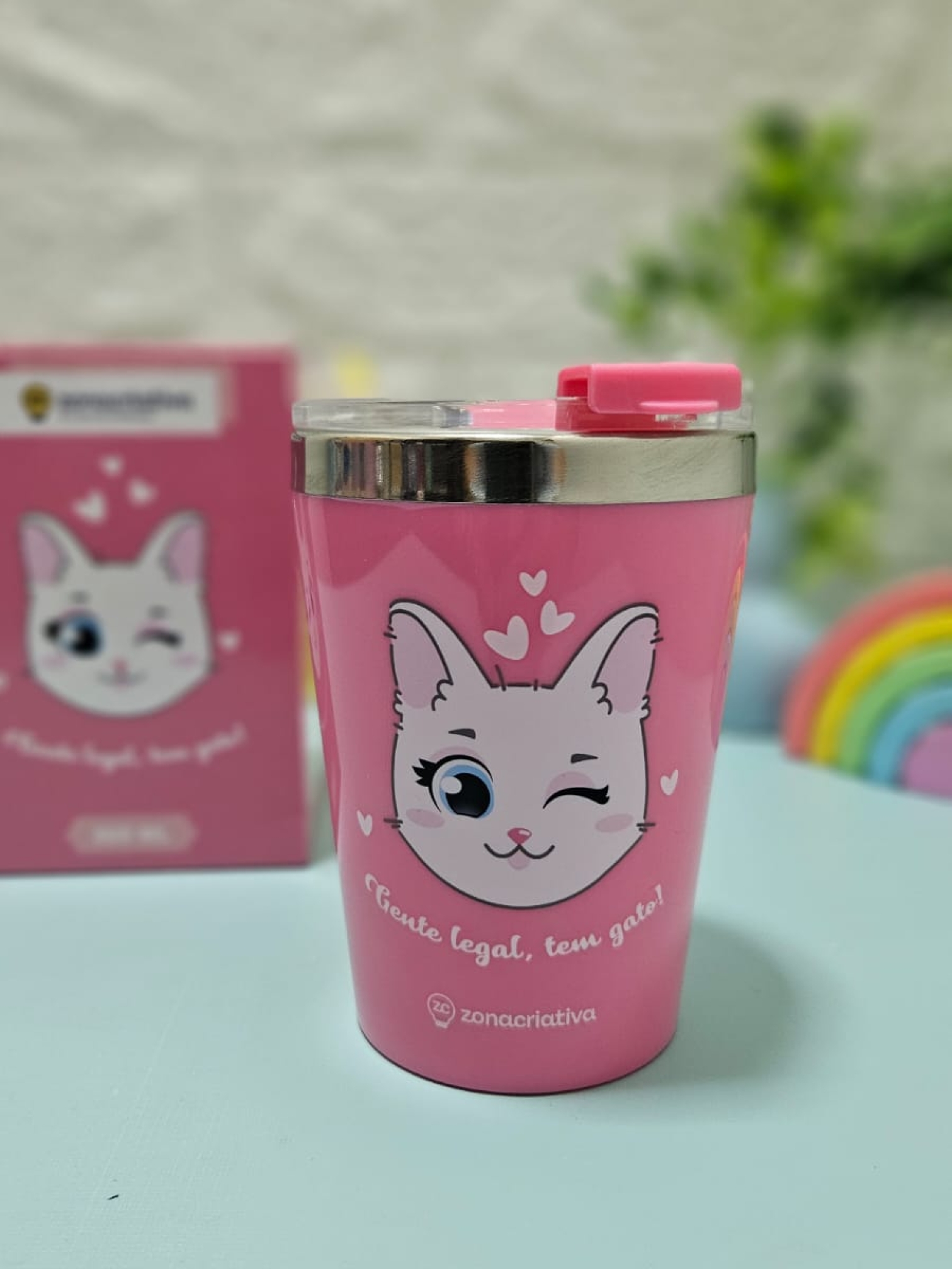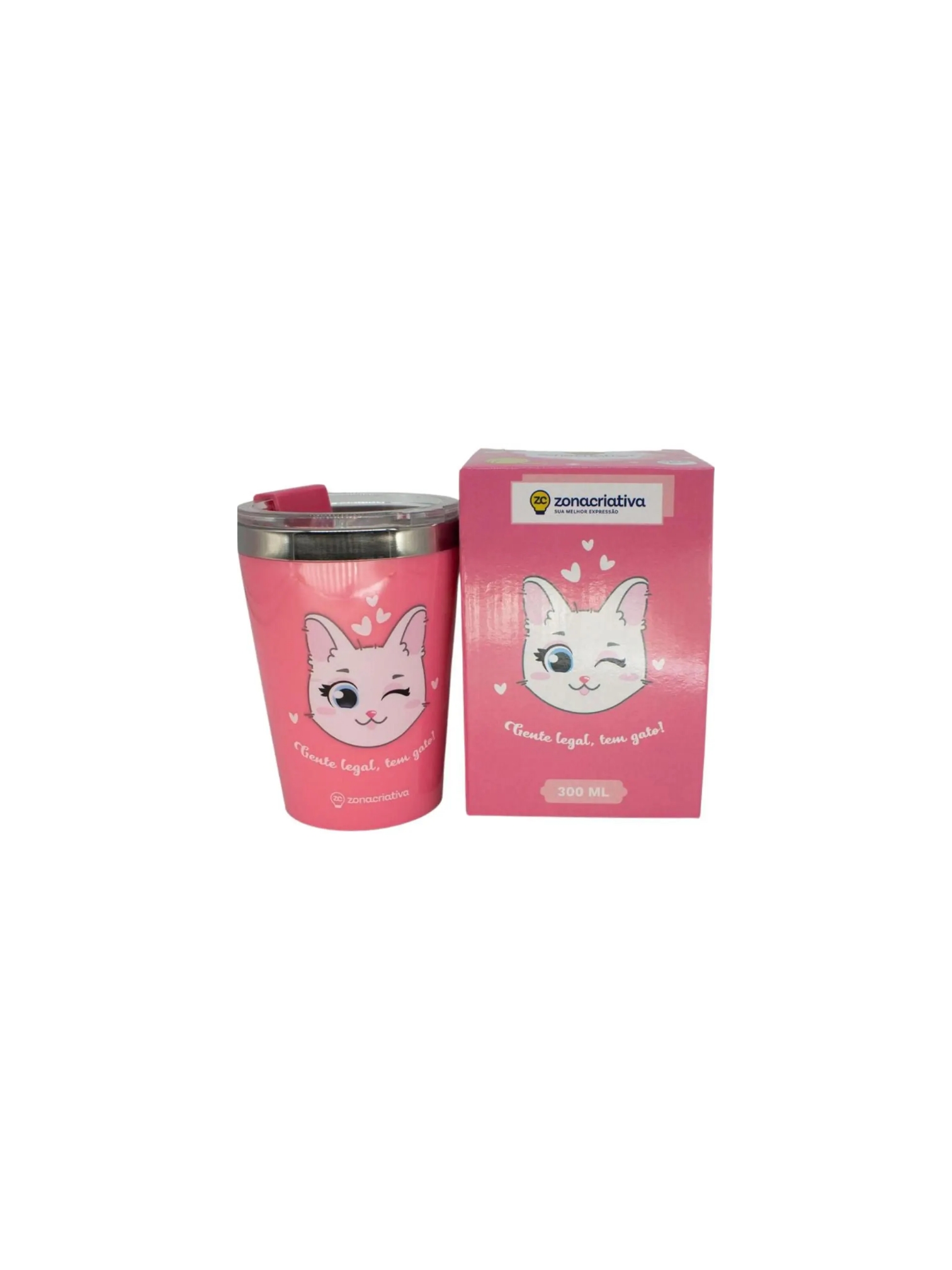 Copo Gente Legal Tem Gato Gata Cat Rosa Térmico Quente Gelado 300ml Com Tampa!