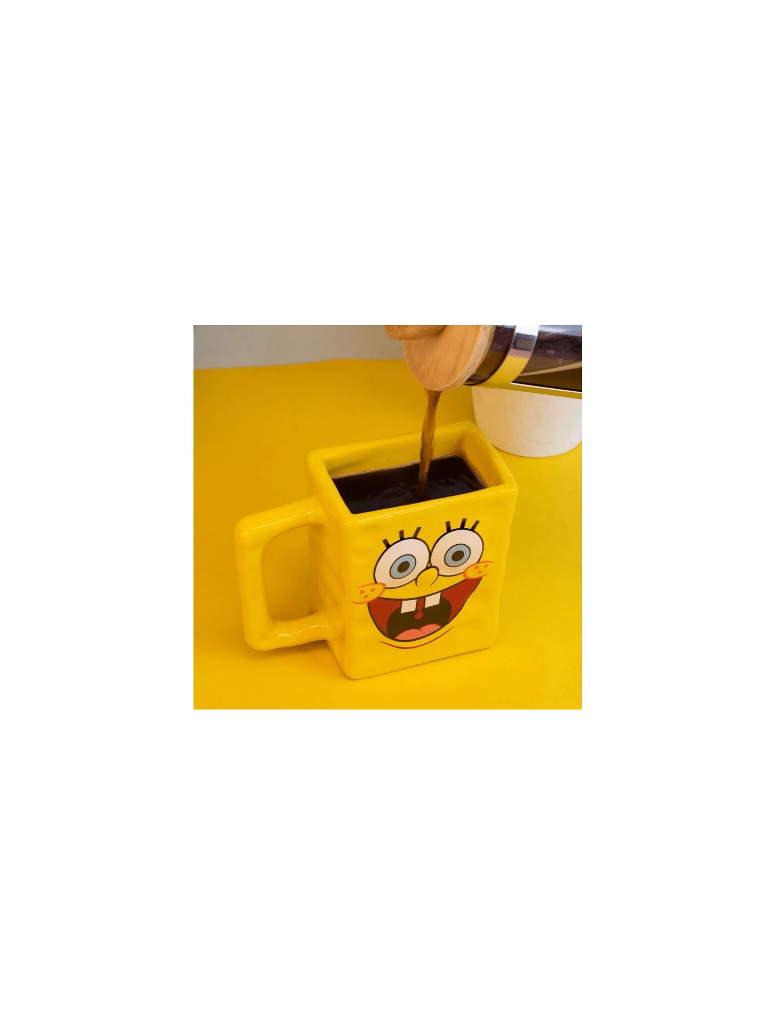 Diretamente da Fenda do Biquíni, apresentamos nossa divertida caneca em formato do Bob Esponja. Perfeita para os fãs do desenho mais querido do fundo do mar! Garanta já a sua e adicione um toque de diversão ao seu café da manhã. Visite nosso site e garanta já a sua!!