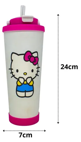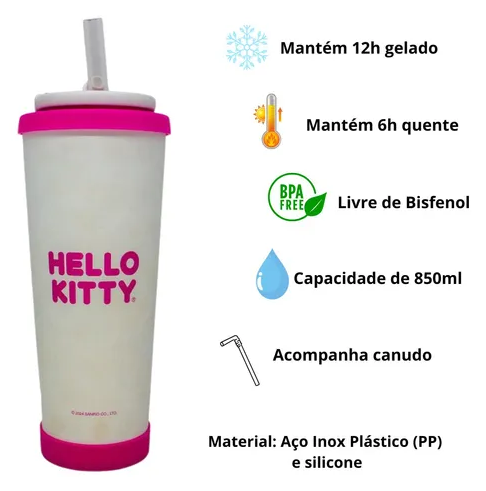 Com um visual vibrante e delicado, ele possui estampa oficial da Hello Kitty, tampa com vedação segura que não vaza, e canudo retrátil para facilitar o consumo. Além disso, acompanha uma escovinha de nylon para limpeza do canudo — um toque de cuidado e praticidade extra!