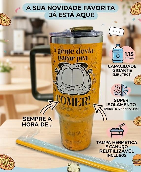 | Conteúdo da Embalagem | Canecão Térmico com pingente Garfield, tampa rosqueável, alça para carregar, canudo com protetor. Embalagem: Caixa Individual |