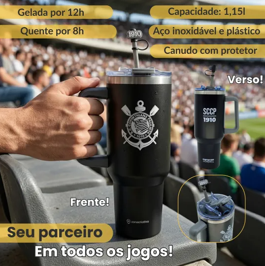 Marca: Zona Criativa Comprimento x Altura x Largura: Produto – 15cm(c/alça) x 27cm x 10cm Comprimento x Altura x Largura: Embalagem – 18cm X 32cm X 14cm Composição do Material: Aço inoxidável; Plástico (PC; PP; Silicone) Instrução de idade: Acima de 10 anos Peso: 587g Cor: Preto Capacidade: 1,150ml SKU: 10026630 EAN: 7908623040409 Detalhes: - Pingente emborrachado; - Capacidade aproximada de 1.150 ml; - Tampa com rosqueamento; - Possui vedação em silicone; - Estrutura em aço inox com partes em plástico; - Acompanha canudo; - Mantém bebidas geladas por até 24h e quentes por até 8h. Instruções de Lavagem: - Lavar com água morna e sabão neutro; - Não utilizar produtos químicos, cloro ou materiais abrasivos; - Não levar ao micro-ondas nem à lava-louças; - Utilize esponja macia, evitando o lado áspero, palha de aço ou escovas rígidas; - Não esfregar com força para evitar riscos e danos ao acabamento; - Secar bem após a lavagem e manter aberto para evitar odores.