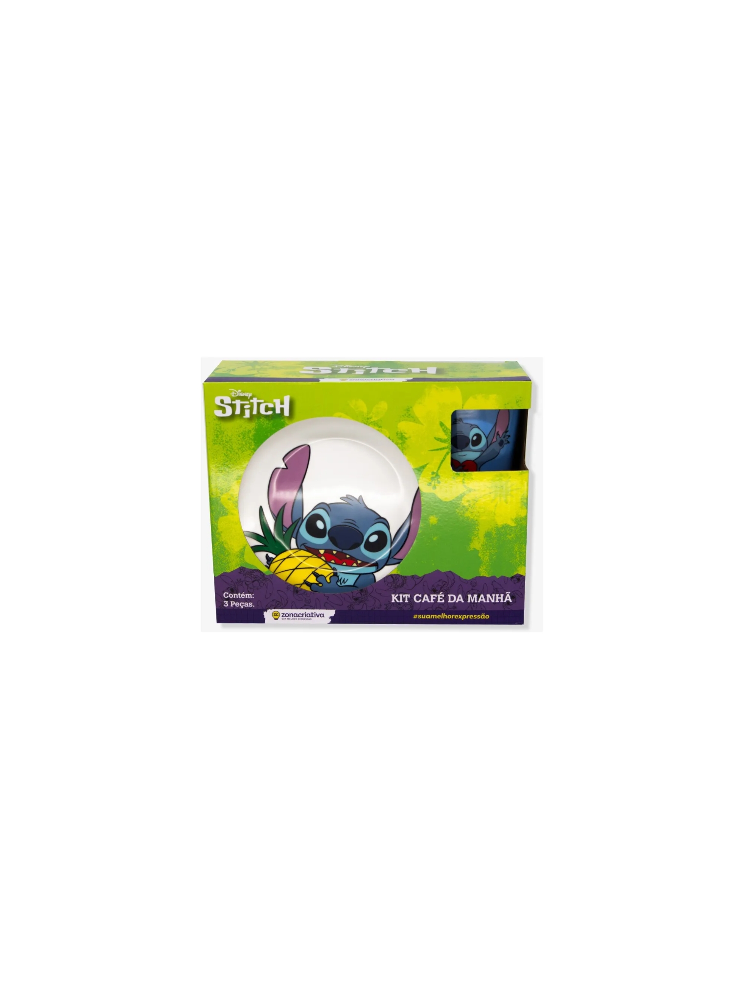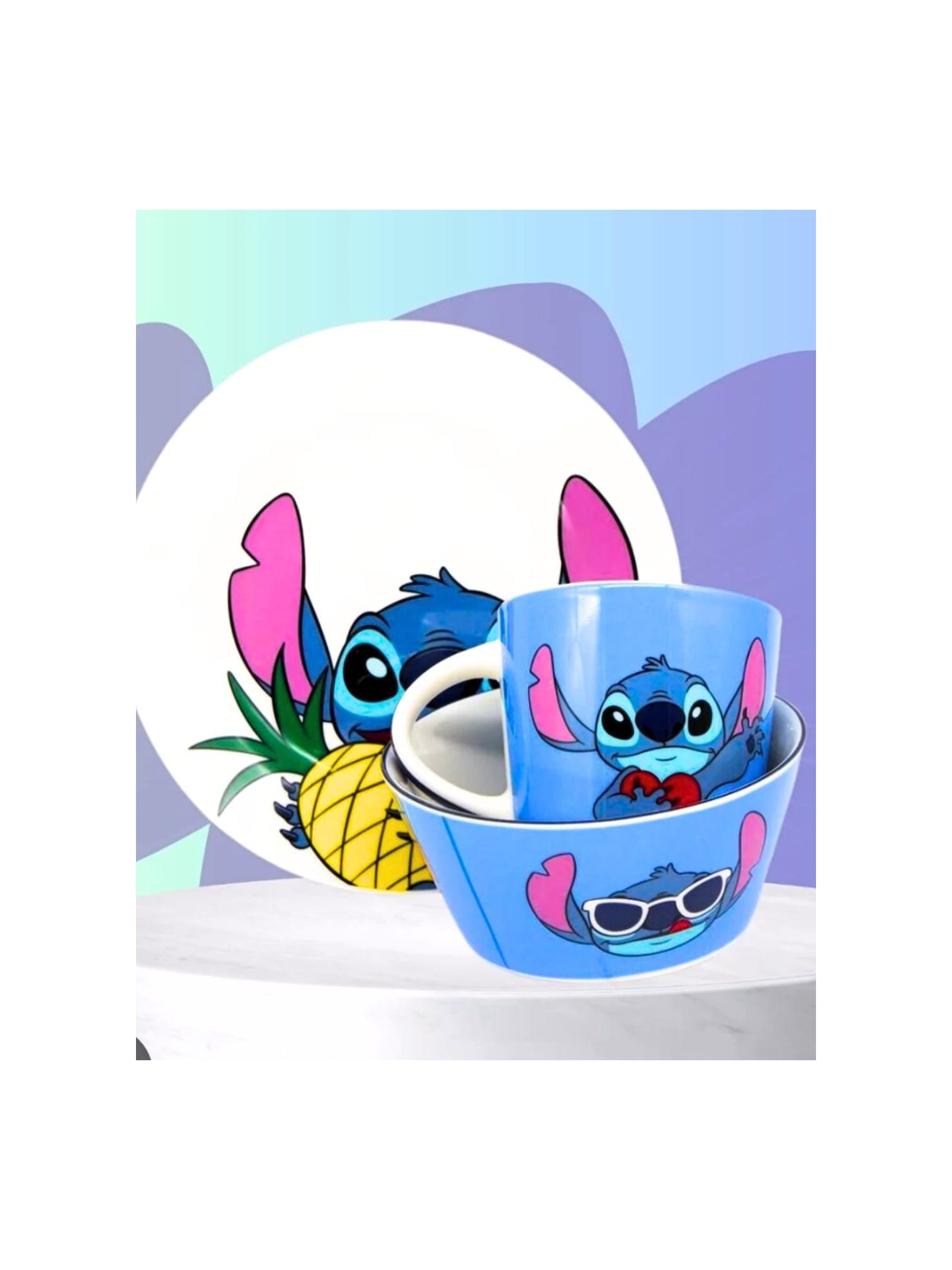 Kit 3 Peças Prato Bowl Caneca Stitch Breakfast Café Da Manhã - Arco Iris